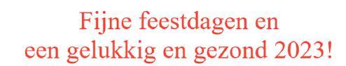 Ivm de feestdagen zijn we vrijdag 23 dec. vanaf 12.30 uur en vrijdag 30 dec. de hele dag gesloten.