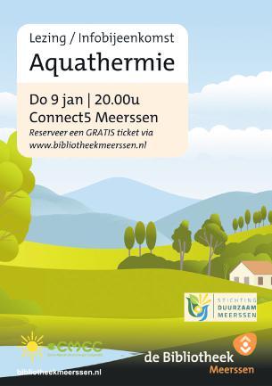 Stichting Duurzaam Meerssen verzorgt samen met EMEC en de bibliotheek een inspirerende lezing over aquathermie, een innovatieve techniek voor duurzame warmte- en koude voorziening. Aquathermie biedt kansen om bij te dragen aan de verduurzaming van energievoorzieningen. De lezing biedt inzicht in de technische haalbaarheid en praktische toepassingen, met concrete voorbeelden uit eerder onderzoek en projecten. Tijdens deze lezing komen aan bod:
