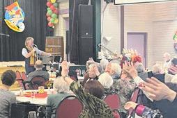 Ulestraten in de Tweede Wereldoorlog onder de aandacht, waarvan een tweede druk zal verschijnen. Dit boek is binnenkort ook te leen is in de bibliotheek. Wij danken Pierre de Rooy heel hartelijk voor zijn onderhoudende verhaal, dat hij bij ons wilde komen vertellen. Onze volgende activiteit is gepland op woensdag 8 februari as. inmiddels traditionele kerstviering in gemeenschapshuis de Stip in Meerssen. De Stip was wederom omgetoverd in een warme kerstambiance. Meterhoge kerstbomen met verlichting en rijkelijk voorzien van divers gekleurde ballen. Andere kerstattributen o.a. slingers, takken en kerstkransen aan wanden, plafond en tafels alsmede Charles Dickens banners maakten het plaatje compleet. 104 personen, voornamelijk gasten en vrijwilligers, waren rond de klok van 14.00 uur aanwezig. Voor het verzorgen van kerstliederen was gemengd koor Neerbeek uitgenodigd.