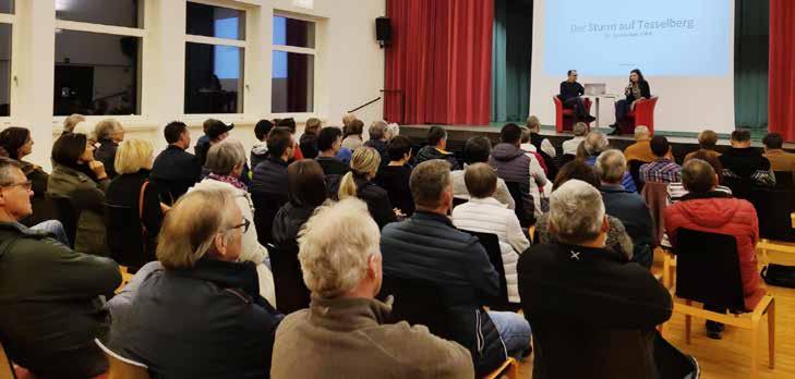 29. Oktober wurde diese bei der Tesselber ger Kirche im kleinen Rahmen übergeben. Frau Giudici war sehr gerührt und dankbar. Bereits am Vorabend der Ehrung veranstal tete die Gemeinde in Zusammenarbeit mit dem Jugendverein Slash und dem Bildungs ausschuss Gais eine Informationsveranstal tung zum Thema „Tesselberg 1964“. Verena Duregger, Autorin des Buches „Die Puste rer Buben - Eine Südtiroler Heimatgeschich te“, hielt im Gespräch mit Klaus Reichegger, Rückblick über die Geschehnisse in Südtirol von 1919-1972, mit besonderem Fokus auf die