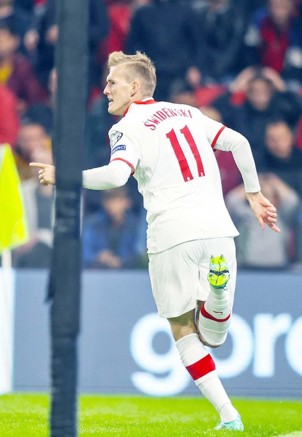 Łączy nas piłka w Bartłomiej Drągowski 19.08.1997 Spezia Calcio 2/0 Łukasz Skorupski 05.05.1991 Bologna FC 8/0 Bramkarz Wojciech Szczęsny 18.04.1990 Juventus FC 71/0 Bramkarz Jan Bednarek 12.04.1996 Southampton FC 47/1 Obrońca Jakub Kamiński 05.06.2002 VfL Wolfsburg 8/1 Pomocnik Ben Lederman 08.05.2000 Raków Częstochowa 0 Pomocnik Karol Linetty 02.02.1995 Torino FC 43/5 Pomocnik Michał Skóraś 15.02.2000 Lech Poznań 3/0 Pomocnik Paweł Dawidowicz 20.05.1996 Hellas Verona 8/0 Obrońca Robert Gumny 04.06.1998 FC Augsburg 6/0 Obrońca Michał Karbownik 13.03.2001 Fortuna Duesseldorf 4/0 Obrońca Jakub Kiwior 15.02.2000 Arsenal FC 10/0 Obrońca Damian Szymański 16.06.1995 AEK FC 11/2 Pomocnik Sebastian Szymański 10.05.1999 Feyenoord Rotterdam 21/1 Pomocnik Nicola Zalewski 23.01.2002 AS Roma 10/0 Pomocnik Piotr Zieliński 20.05.1994 SSC Napoli 79/10 Pomocnik Tymoteusz Puchacz 23.01.1999 Panathinaikos AO 12/0 Obrońca Bartosz Salamon 01.05.1991 Lech Poznań 10/0 Obrońca Krystian Bielik 04.01.1998 Birmingham City 10/0 Pomocnik Przemysław Frankowski 12.04.1995 RC Lens 31/1 Pomocnik Robert Lewandowski 21.08.1988 FC Barcelona 139/78 Napastnik Krzysztof Piątek 01.07.1995 US Salernitana 1919 27/11 Napastnik Karol Świderski 23.01.1997 Charlotte FC 20/8 Napastnik Stan na 25.03.2023