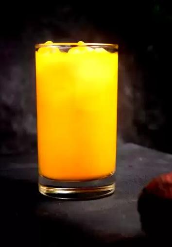 • Vierte en un vaso largo seis cubos de hielo, una onza de jarabe de granadina y el jugo de una naranja. Reserva.