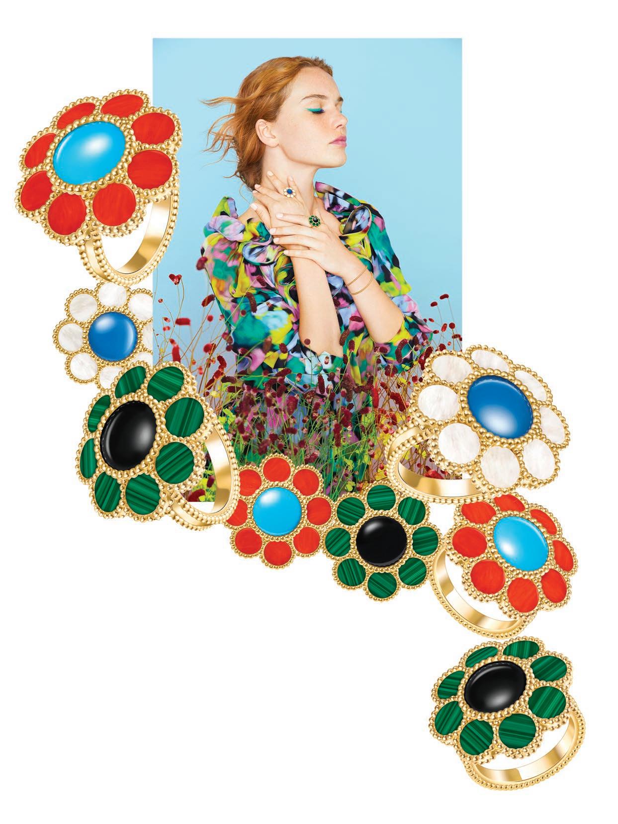 This limited collection of rings seamlessly blends golden hues with the vibrant tones of ornamental stones, evoking the warmth of sunlight and opening a new chapter in Van Cleef & Arpels’ floral narrative. Drawing on over a century of expertise, each ring is meticulously crafted to showcase commitment to excellence.