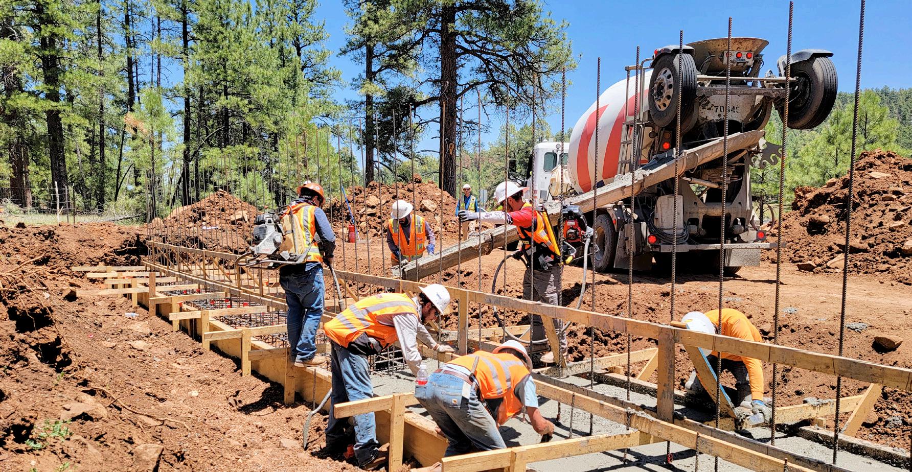 From concrete to crane work, Northern Arizona companies are directly benefiting from the project. CEMEX, which operates a batch plant in Flagstaff, is supplying what will total approximately 350 truckloads of concrete. Aggregates are being hauled from CEMEX’s Grey Mountain site and Clarkdale Aggregates in the Verde Valley. A trucking