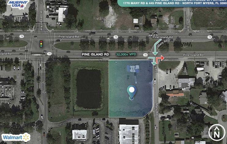 Fort Myers is one of the fastest-growing cities in Florida, with nearly 100,000 residents and a metro population of over 830,000. The city has experienced more than 38% population growth since 2010, supported by a diverse community and a strong economy anchored in tourism, agriculture, and light manufacturing. Median household income is approximately $62,000, and the area is recognized nationally for its business-friendly environment. The property at 445 Pine Island Road is a 1.1 cre, cleared site located at the high-traffic intersection of U.S. 41 and Pine Island Road, directly adjacent to a Walmart-anchored shopping center. Surrounded by restaurants, retail, and services, this North Fort Myers location benefits from excellent visibility, accessibility, and a broad customer base, making it ideal for commercial development.