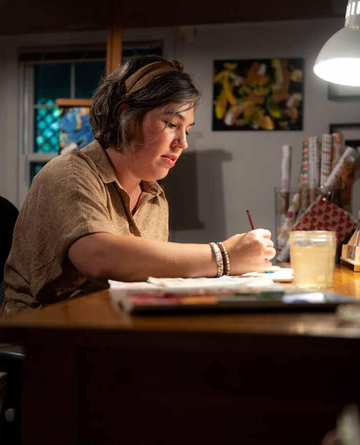Today, Jen offers a wide array of cards, wrapping paper, and paintings, all featuring her original work. We caught up with her at her home studio to learn more about her business, what inspires her, and what’s next.