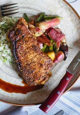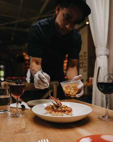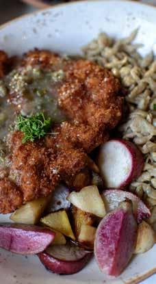 A few months into ownership, the Murphy family felt as though they had hit their stride, but then catastrophe struck. The Murphys pur chased Heirloom in December 2019. Within just a few months, the COVID-19 pandemic would be in full swing, and restaurants would be required to close their doors to all dine-in customers. For a while, the family was able to pivot. Parent/inves tor Scott and son/chef Patrick , along with Pat rick's longtime friend from the days of culinary school at Charlotte's Johnson and Wales Uni versity, Seth Wilson, redesigned the menu and operation to more efficiently serve takeout cus tomers, but it wasn’t sustainable. Ultimately, the team decided to shut down the restaurant. They grappled with whether to do so permanently or to find a way to weather the viral storm, finally deciding to say goodbye to the Heirloom they had known in west Charlotte and open a new location in Belmont.