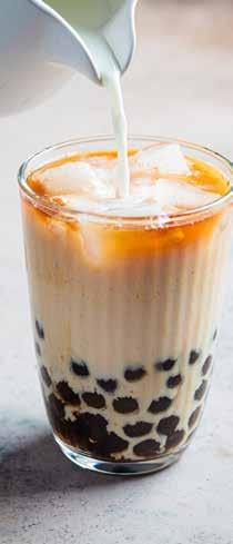 seasonal play. Take, for example, the peach party: a prosecco float flavored with Kettle One peach & orange blos som, Cointreau, and lemon.
