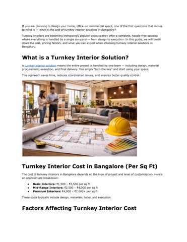 If you are planning to design your home, office, or commercial space, one of the first questions that comes to mind is what is the cost of turnkey interior solutions in Bangalore?