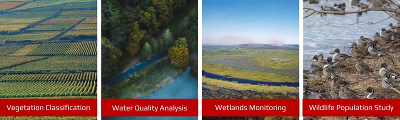 Spectral imaging allows identifying one material from another simply by measuring the reflectance of light – without needing to take a sample By mounting a spectral camera on a drone, it can be used for example in looking for contamination and determining the water quality, estimating the fertilising need in agriculture, identifying vegetation species, or studying wildlife population from the air