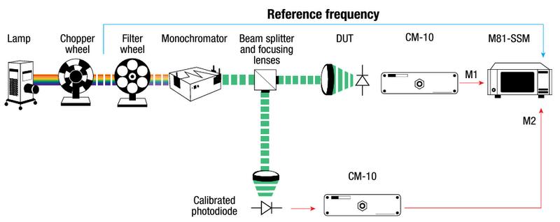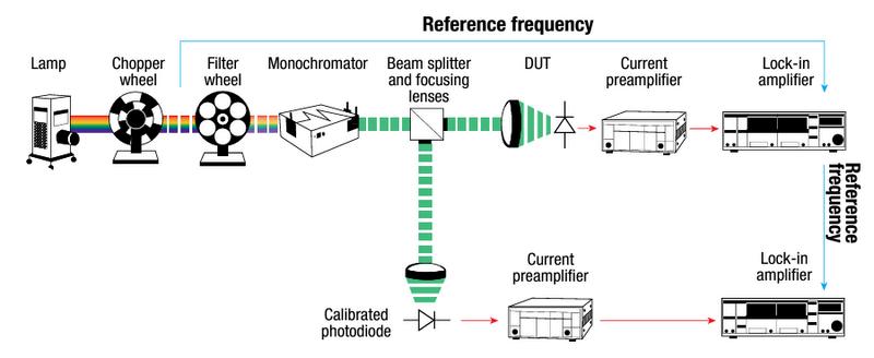 Figure 1 illustrates a typical sEQE measurement platform used in OSC characterisation sEQE setups are equipped with a broad-spectrum light source covering the wavelength range of interest for a given device under test (DUT) Halogen lamps are the standard for measurement in the NIR/VIS range