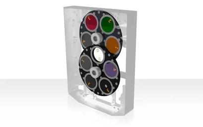 The combination of a separate filter and aperture wheel, allowing a total of 35 freely selectable combinations, is prerequisite for a universal application in measurement tasks with high object temperatures and in the field of spectral thermography The neutral density filters used for signal attenuation or the combination of spectral filters and apertures reliably prevent interference effects.