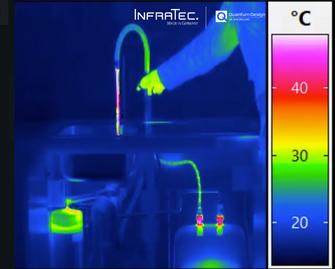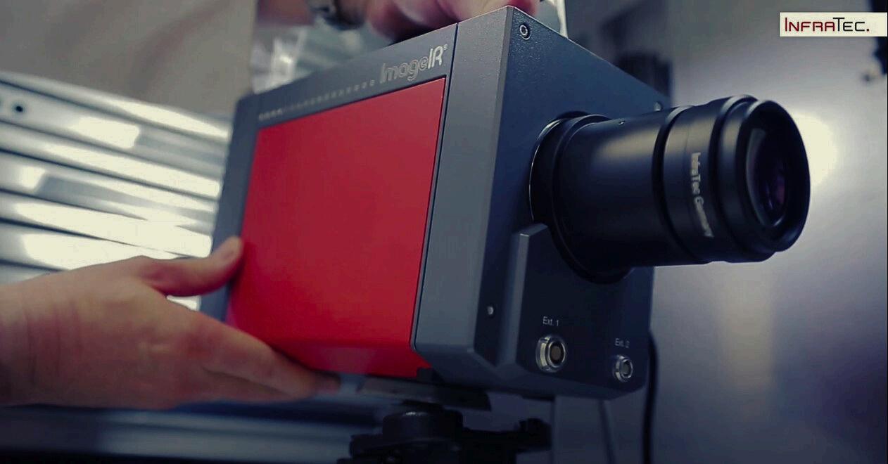The infrared camera used for this purpose is the ImageIR® 8300 from InfraTec with a M=3x magnification microscope lens or a macro attachment. The measurements are evaluated with the IRBIS® 3 thermography software belonging to the camera and the additional module IRBIS® 3 active