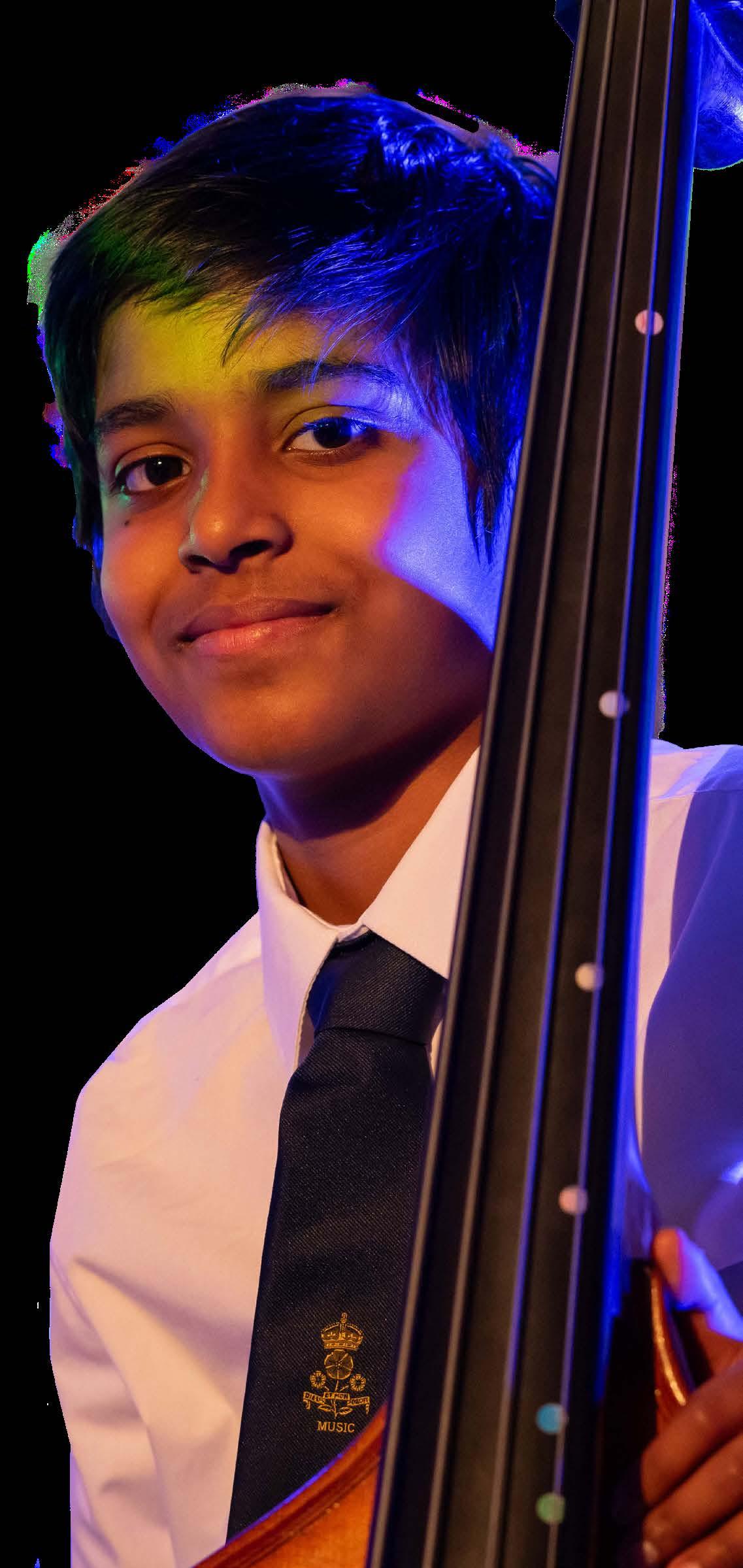 “Being part of the QE music community has really helped me express myself. There are amazing opportunities for joining ensembles and performing,” says Youer Chen, of Year 7. He has already taken full advantage. A keen singer, Youer is in the Junior Choir and Chamber Choir. He plays the piano at Grade 7 level and double bass at Grade 5. He has joined the Orchestra, Junior Strings and, exceptionally at his age, Senior Strings. “The older pupils are role models. I would love to do conducting and lead ensembles like them in the future.”