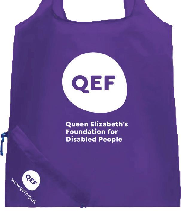 We’ve recently launched a new range of QEF pin badges, trolley token keyring and fold-up pouch bags. They’re perfect whether you’re hitting the shops or simply want to brighten up an outfit, and every item sold will help disabled people live life more independently.