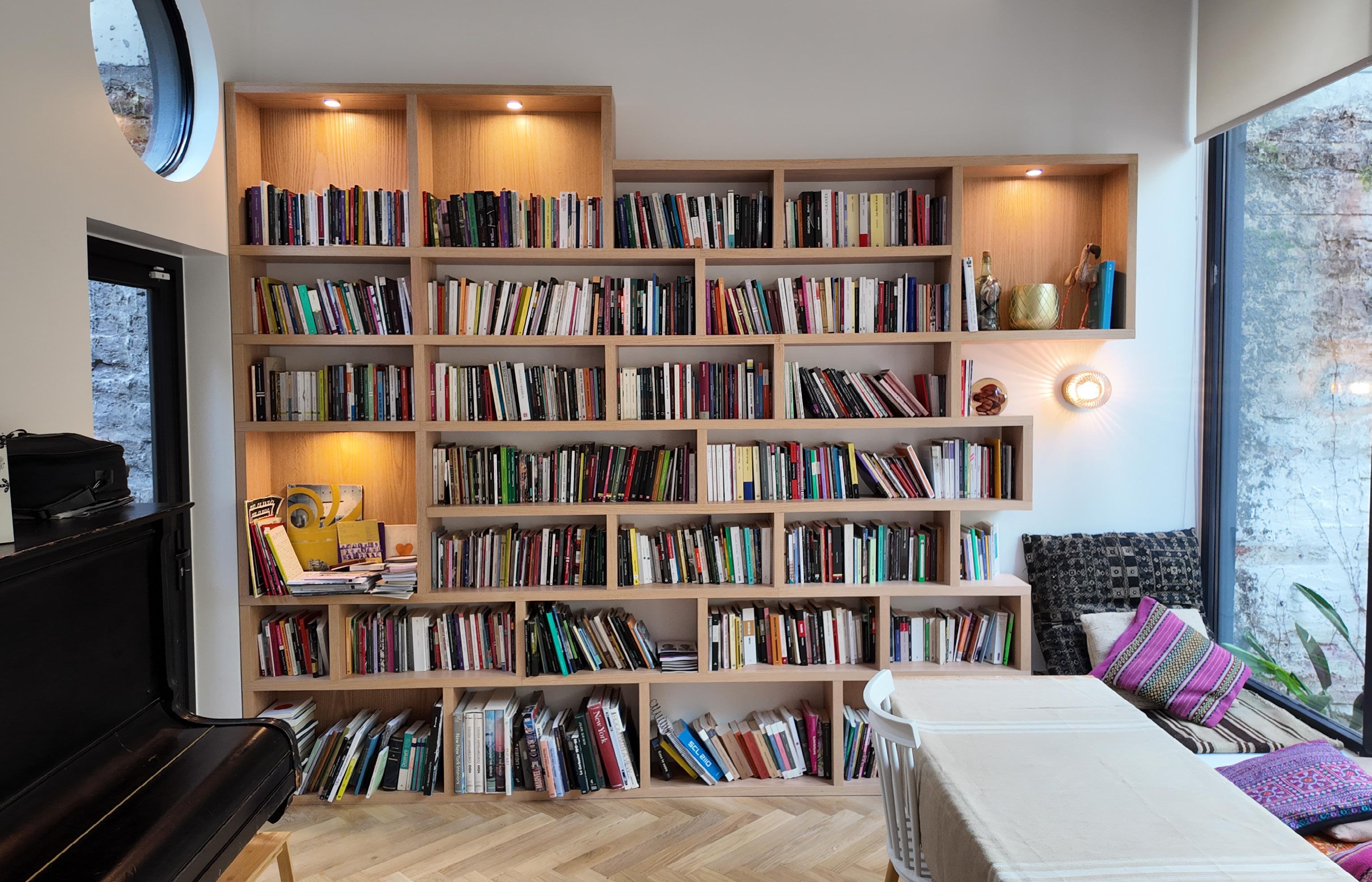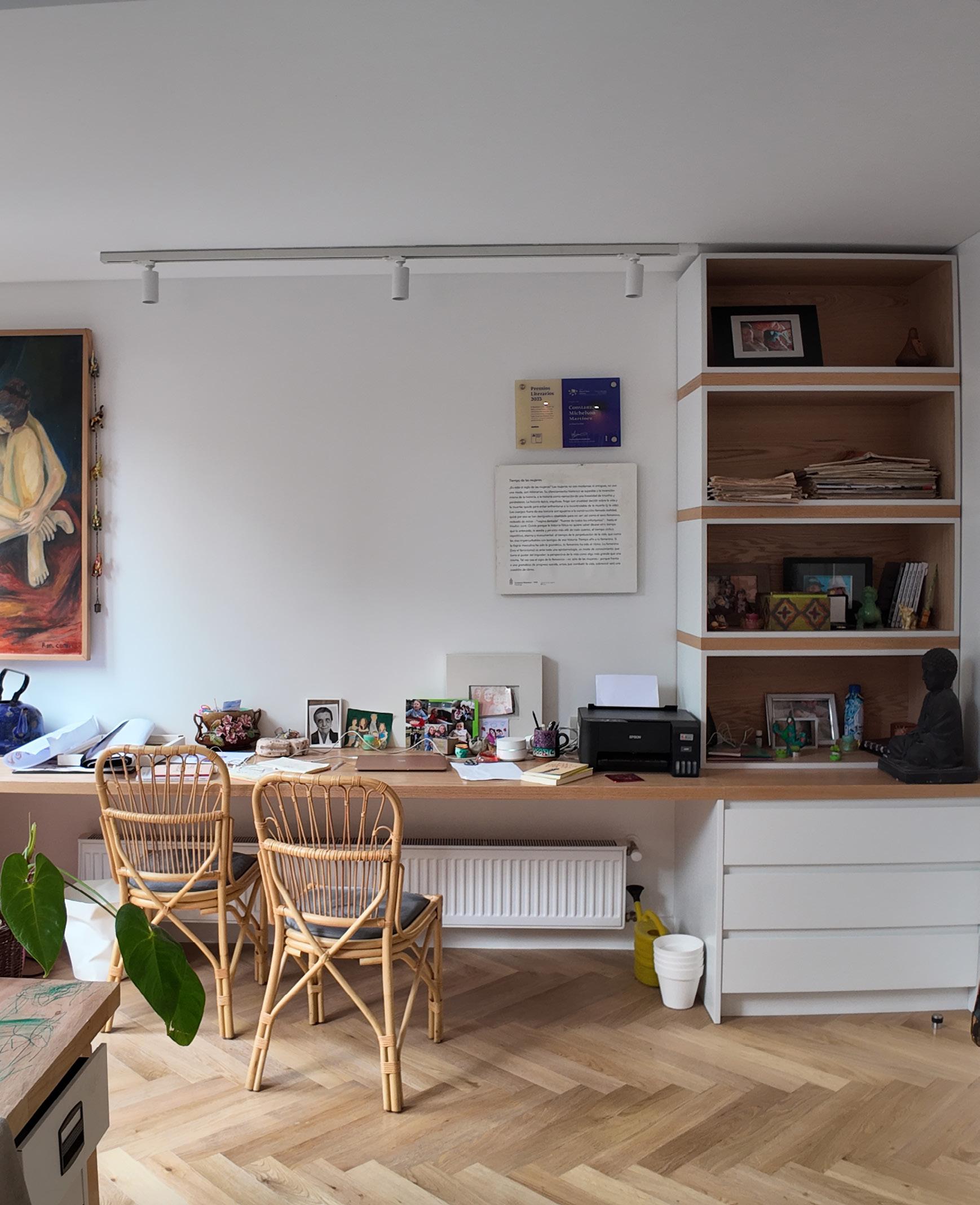Se realiza la intervención dentro de la vivienda de uno de nuestros clientes para las áreas de: sala, habitación, cocina y lavadero. En este proyecto, qiiip project diseñó e implementó mobiliarios en los espacios nombrados, tales como una biblioteca y escritorio para la sala, respaldos, veladores y clóset para la habitación y todo lo que es cocina y área de lavadero.