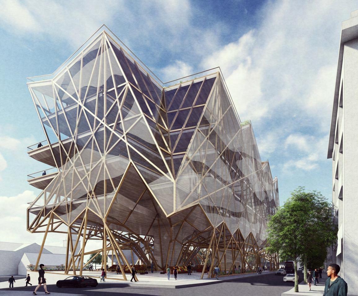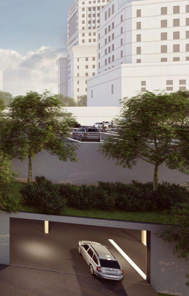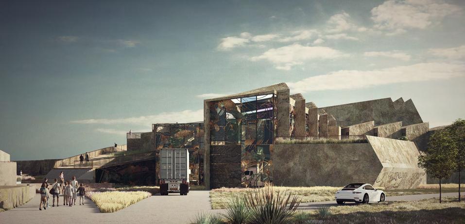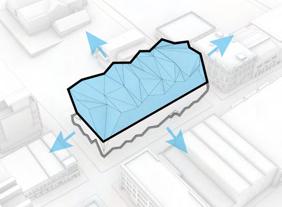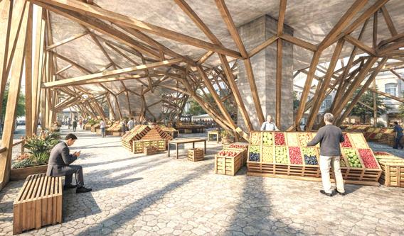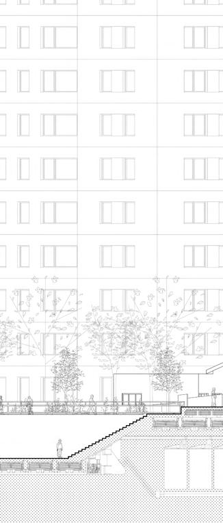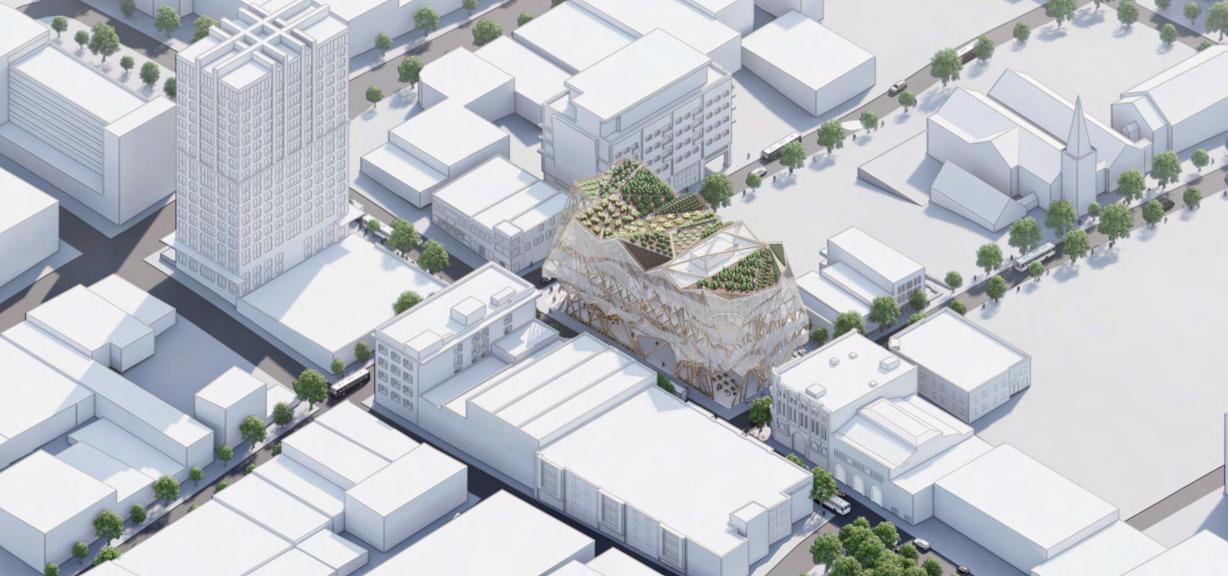 The project aims to transform an existing parking lot into a transit hub that maintains the same parking capacity while fully leveraging the site’s topography.