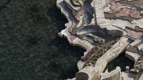 The seawall is redesigned through an expanded cross-section and surface roughening to enhance its capacity for wave energy absorption. At the same time, this intervention creates ecological habitats for marine species such as seaweed, which thrive in tidal environments, adding both environmental resilience and ecological value to the coastline.