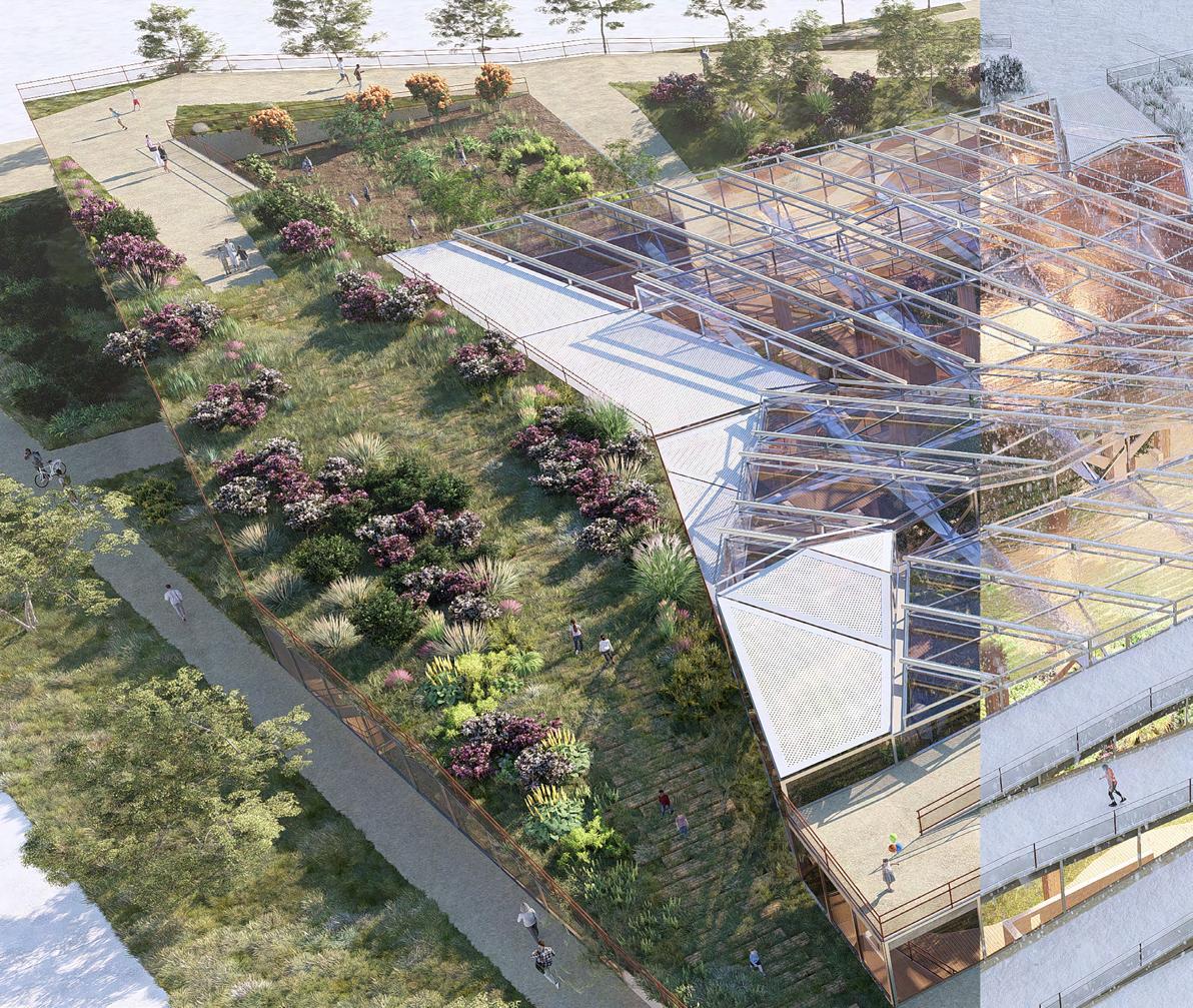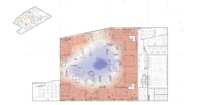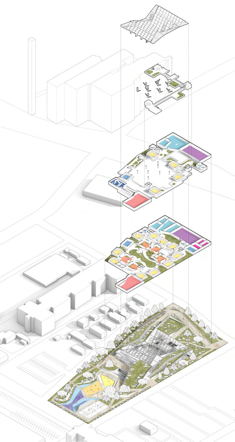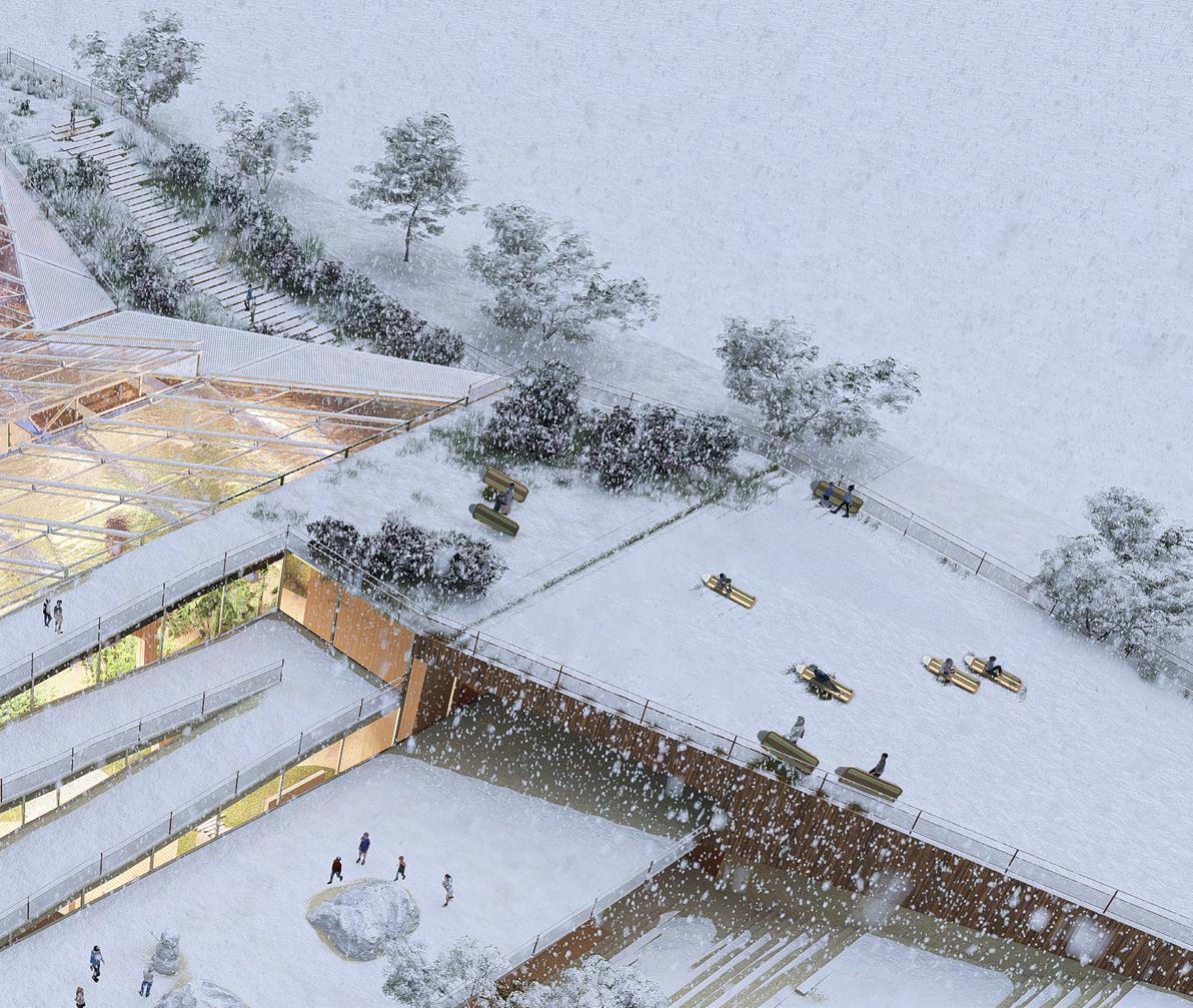 Located in Denver, Colorado, this elementary school project investigates how thermal ecology and natural systems can function as both environmental infrastructure and pedagogical tools. Classrooms are organized around a central botanical garden, where plants and living systems support experiential learning through observation, interaction, and seasonal change. Rather than serving as decorative elements, these natural components actively shape spatial experience and educational engagement.
