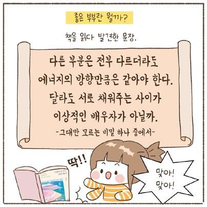보고 큰 깨달음을 얻었다고 한다. 모두에게는 미처 알리 지 못한 각자의 사정이 있으 니 감정을 드러내기 보단 일 단 그러려니 하고 넘어가는 자세가 필요하다는 사실을, 그리고 그 대상이 가족이라면