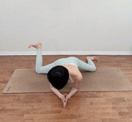 STEP 2. 개구리 자세에서 5회 이상 호흡 후 엉덩이를 살짝 앞으로 보냈다가 한 발씩 드는 연습을 해보세요.