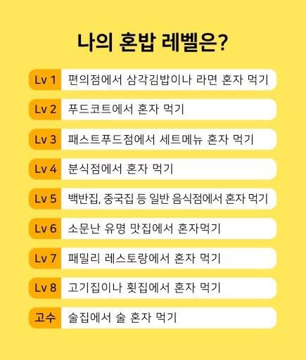 려면 힐끔힐끔 눈치를 보며 식 사를 해야 했다. 혼밥 레벨 테 스트가 생길