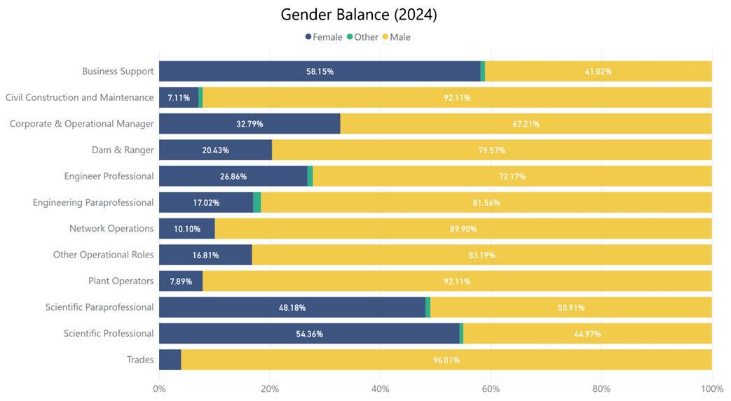 Notably, this year’s reporting includes the gender category Other for the first time, reflecting broader shifts in the Australian employment landscape and growing national emphasis on diversity, equity, and inclusion. While this shift is not yet strongly reflected within operational roles in the water sector, it represents an important step forward. As the sector continues to navigate workforce shortages and succession challenges, embracing diversity will be essential to building a more sustainable and representative workforce.