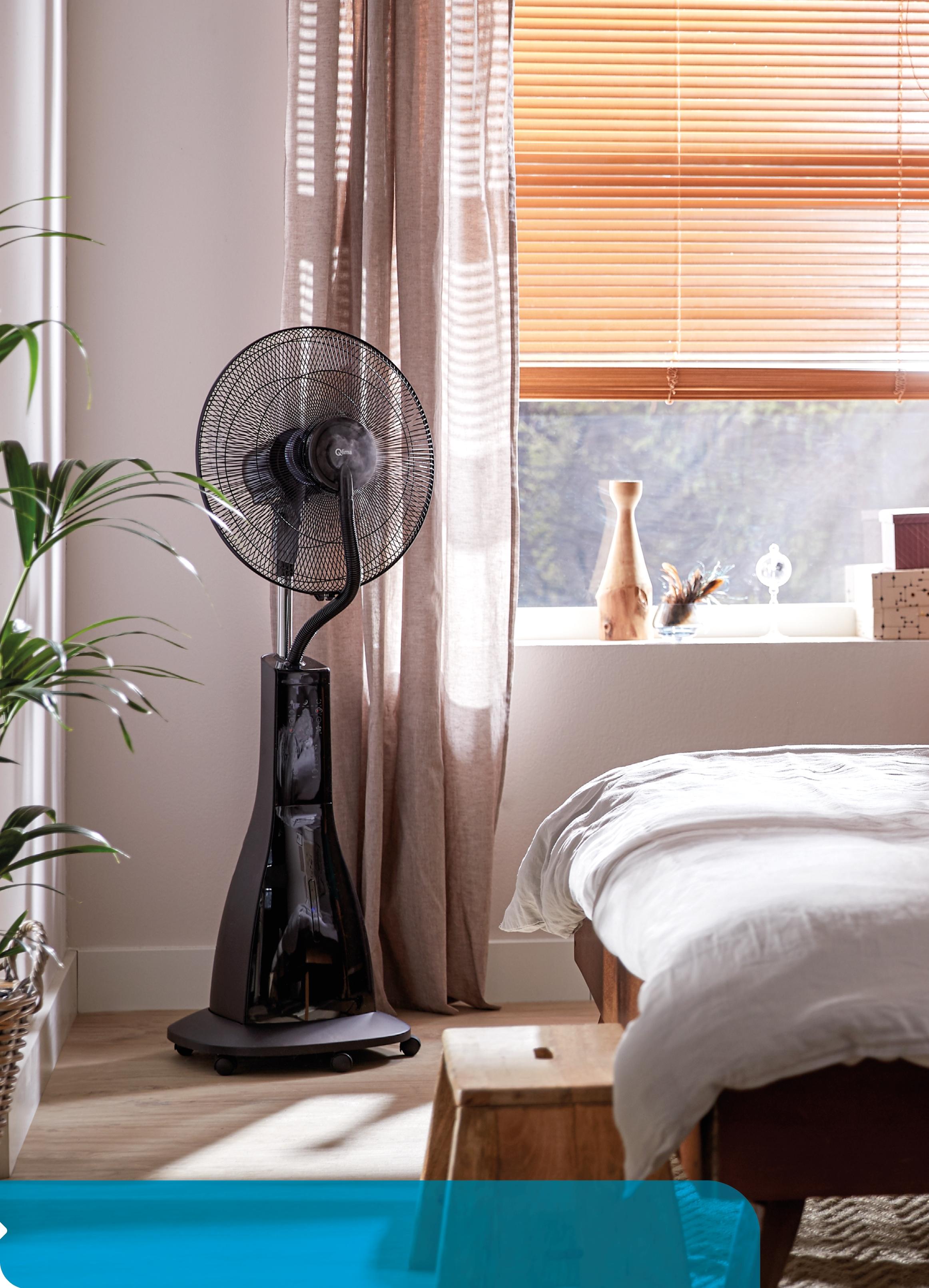 Koelen: Het toestel produceert, met hoge efficiëntie, een aangename en verfrissende koele luchtstroom met hoge capaciteit.
