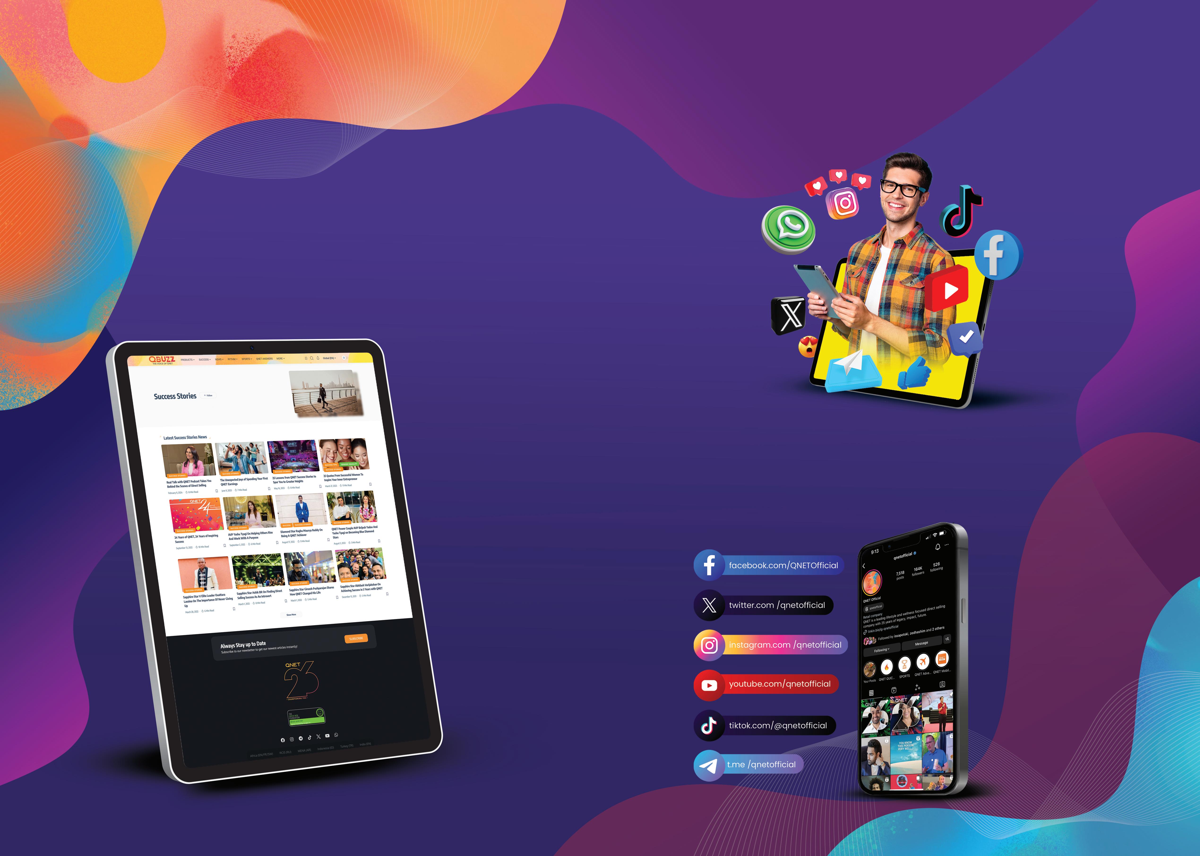 Engage with QNET on over 50 social media channels in 9 languages. Follow us on Facebook, Instagram, Twitter, YouTube, TikTok, Telegram, and WhatsApp Channel for the latest news, product launches, and inspiring stories.