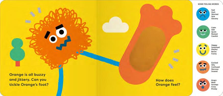 Playful, friendly monsters prompt the reader to empathise with them as the child guesses the monsters’ feelings based on their facial expression or body language. Simple text encourages the reader to interact with the touch-and-feel patches, exploring how the tactile makes them feel.