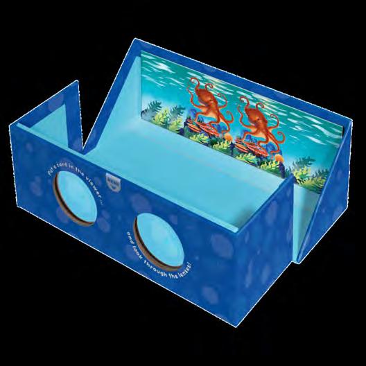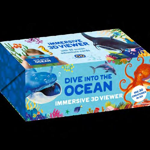 Choose a creature card and place it in the box, then look through the lenses to start your underwater adventure! See a great white shark's rows of teeth, a clown fish nestled in an anemone, an orca leaping from the water, and many other aquatic favourites in three dimensions. Turn over the cards to discover fun facts about each wild and watery creature.
