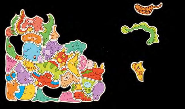 From adorable animals to fun fantasy creatures, there are no regular jigsaw-puzzle pieces in this charming 300-piece cluster puzzle: each piece takes the shape of the character itself! Piece together all 300 kawaii creatures to complete the puzzling challenge.