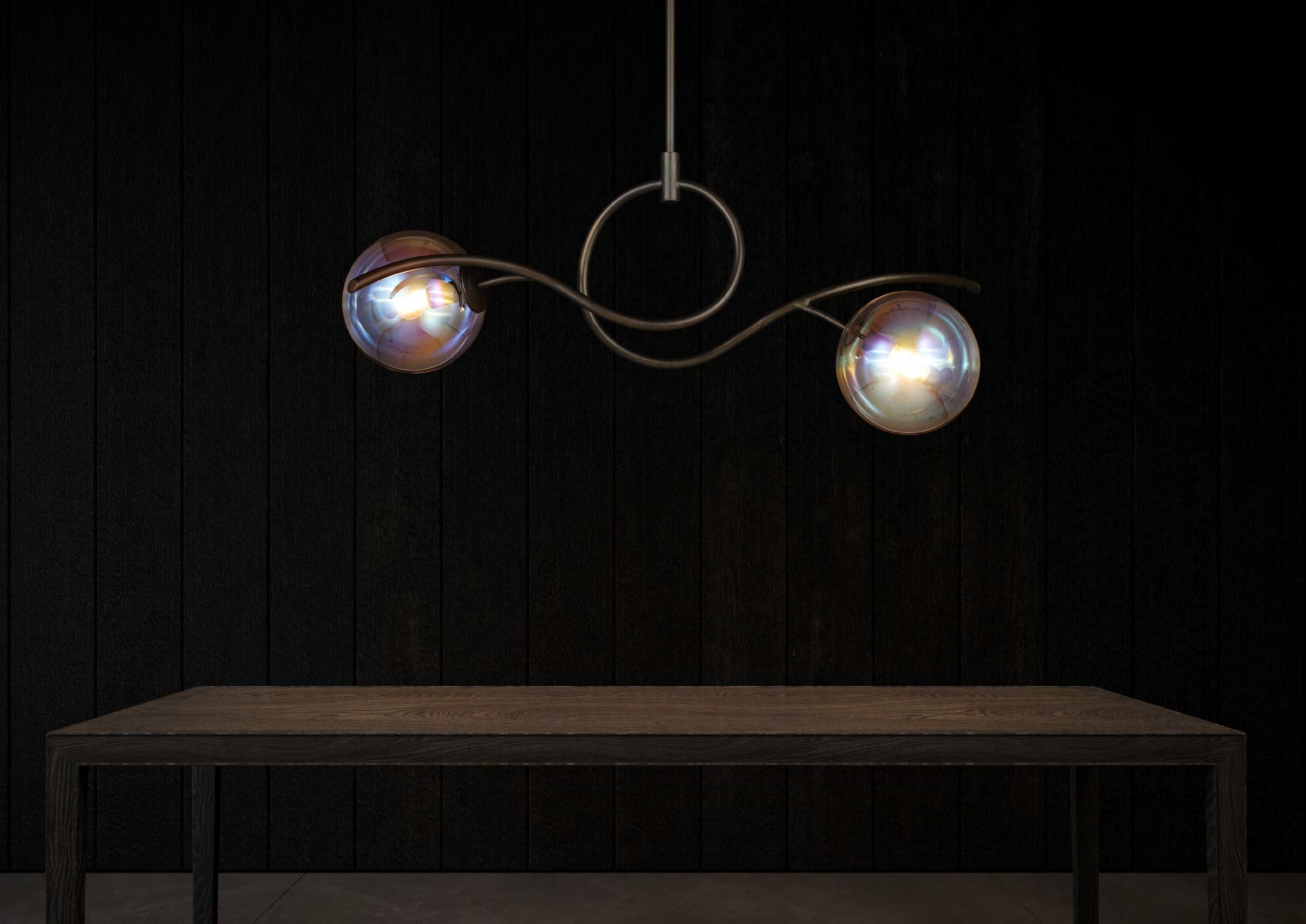 What begins as a simple sketch with William’s pen, results in a sculptural lighting object with character, crafted exclusively by hand and with love by skilled artisans, under the direct supervision of William. All creations differ from each other and have little marks of handcrafting, like the colorful patina, grinding structure, little glass characteristics, which give each piece its individual charm.