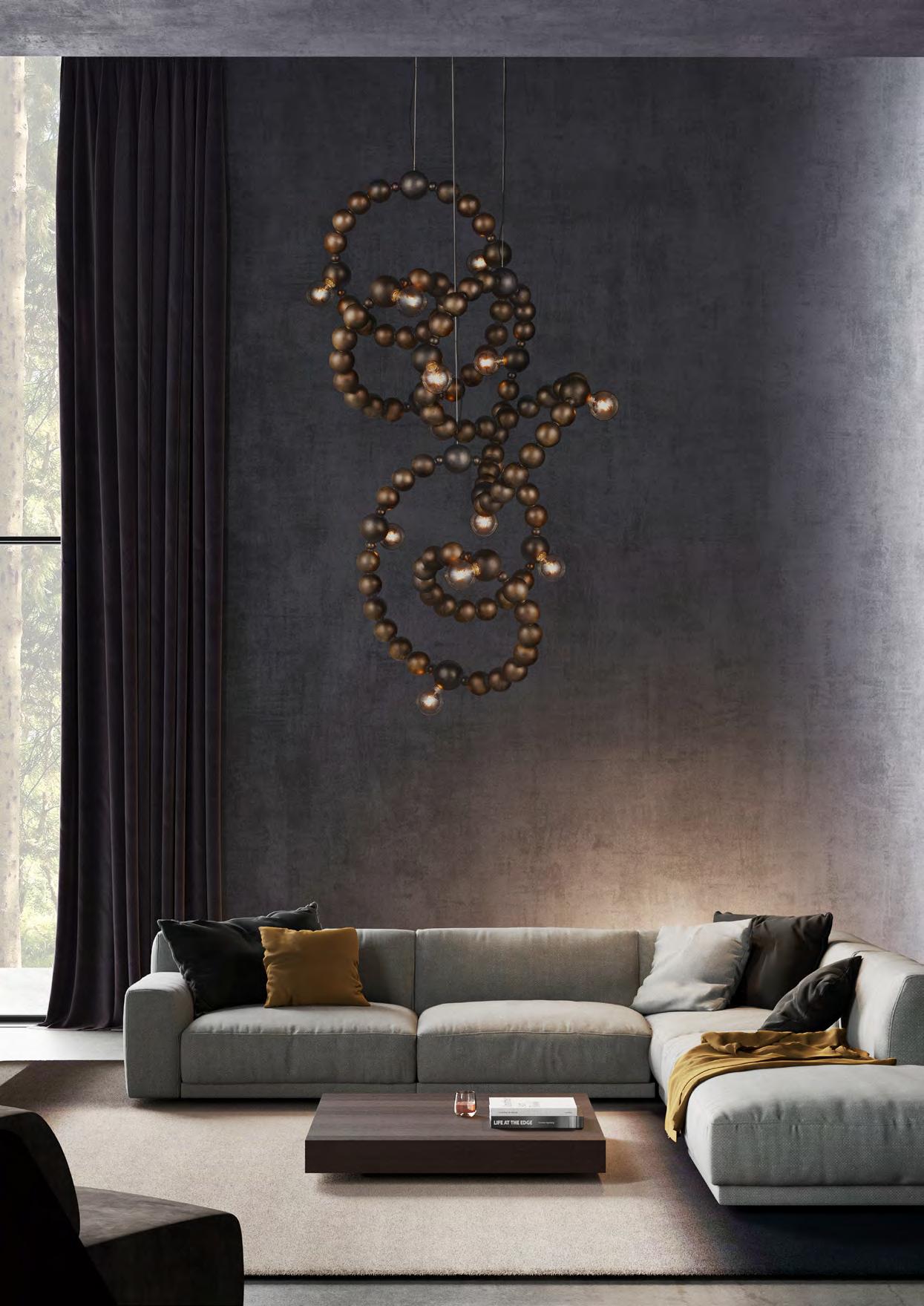 New Collections 2023 New Collections 2023 BUBSOBJ160BDP Sculptural Object W.160xD.120xH.190 cm, 7x E27, 22 kg, bronze dark patina finish Composition of 2x BUBSOBJ160BDP Sculptural Object W.160xD.120xH.190 cm, 7x E27, 22 kg, bronze dark patina finish BUBHL140BLM Hanging Lamp Long L.140xW.50xH.40 cm, 5x E27, 9 kg, black matt finish