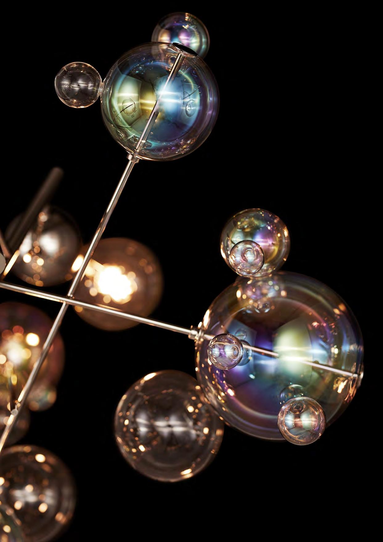 This fl oating jewel is a celebration of life, a chic and thoroughly sensual collection of globes and light composed just for your pure delight.