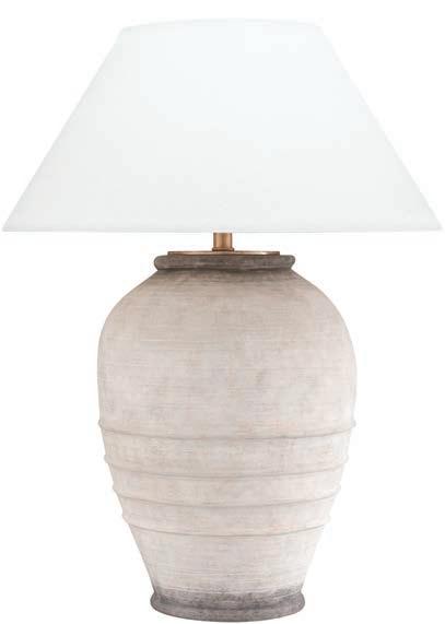 20 21 HARBOR PARK L1506-AGB/CSI ITEM W H BASE SHADE MATERIAL BULBS FINISHES L1506 12.75" 29” 8"L x 5.5"W 12.5"T x 8.5"B x 13.75"H Belgian Linen 1 75 w/m Not Included Aged Brass/Ceramic Satin Ivory (AGB/CSI) Solid brass full-range dimmer socket. PENONIC ITEM W H BASE SHADE MATERIAL BULBS FINISHES L1850 11.75" 29” 8.75"D 11.75"D x 15.75"H Belgian Linen 1 75 w/m Not Included Aged Brass/Hematite Ceramic (AGB/CHM) Aged Brass/White Ceramic with Specks (AGB/CWS) Solid brass full-range dimmer socket. L1850-AGB/CHM L1850-AGB/CWS