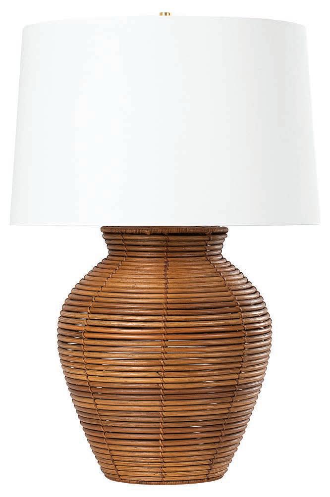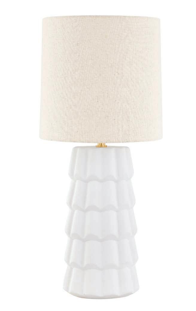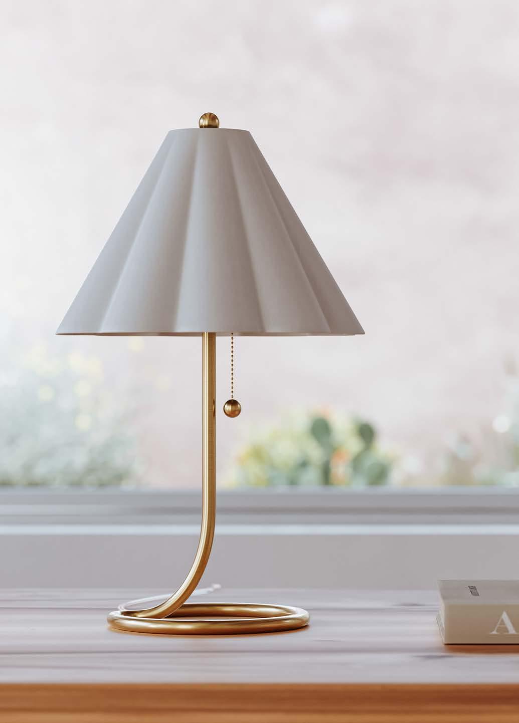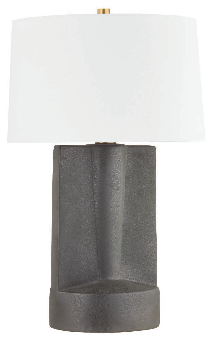 The Palisade lamp’s playful shape takes center stage. Its sculptural quality and size assure it holds its own in a space, while Aged Brass accents and a soft gray linen shade give it lasting sophistication.