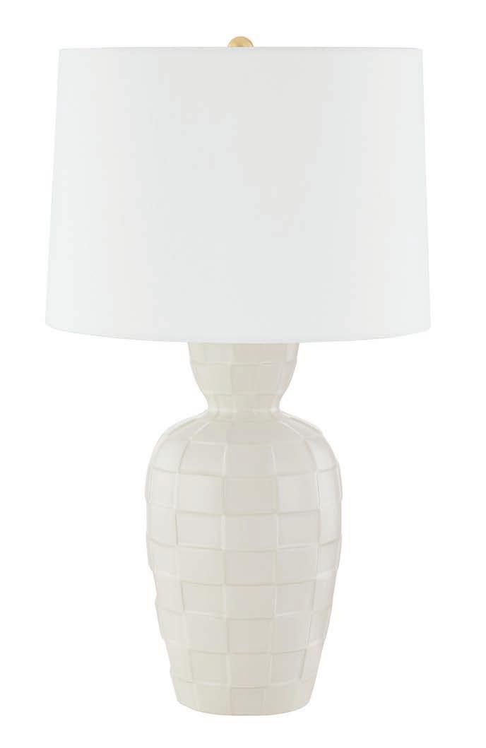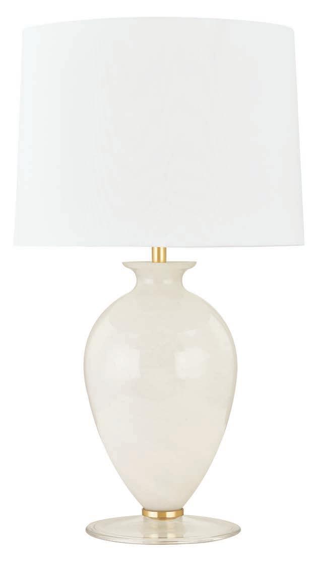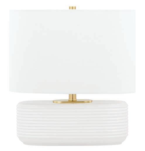 GROVE L1607-AGB/CSW ITEM D H BASE SHADE MATERIAL BULBS FINISHES L1607 12" 22” 8" 12"D x 10.5"H Belgian Linen 1 60 w/m Not Included Aged Brass/Ceramic Satin White (AGB/CSW) Solid brass full-range dimmer socket.