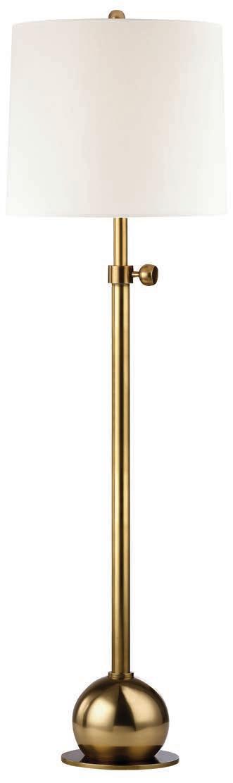 140 141 On/Off foot switch located 9" from cord exit. PHOTOGRAPHY & DESIGN, DOMINO - AARON BENGOCHEA WHIT HL382401-AGB/BK HL382401-PN/BK ITEM W H BASE BULBS FINISHES HL382401 26.75" 60.25” 11"D 1 60 w/m Not Included Aged Brass/Black (AGB/Bk) Polished Nickel/Black (PN/BK)