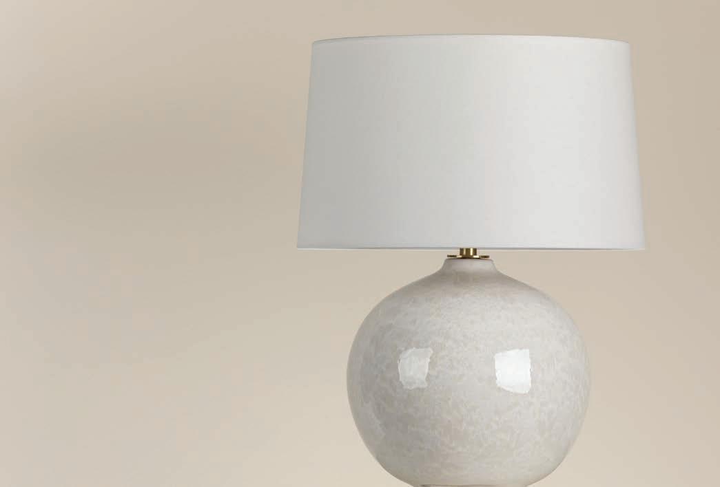 6 7 SURREY ITEM L W H BASE SHADE MATERIAL BULBS FINISHES L1689 17.5" 11" 20.5" 13.75"L x 6.25"W (17"L x 10.5"W)T x (17.5"L x 11"W)B x 12"H Linen 1 60 w/m Not Included Aged Brass/Ceramic Matte Grey Blue (AGB/CGU)