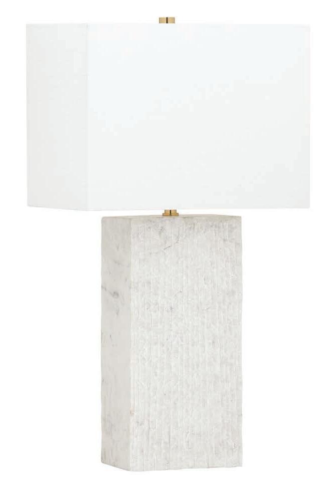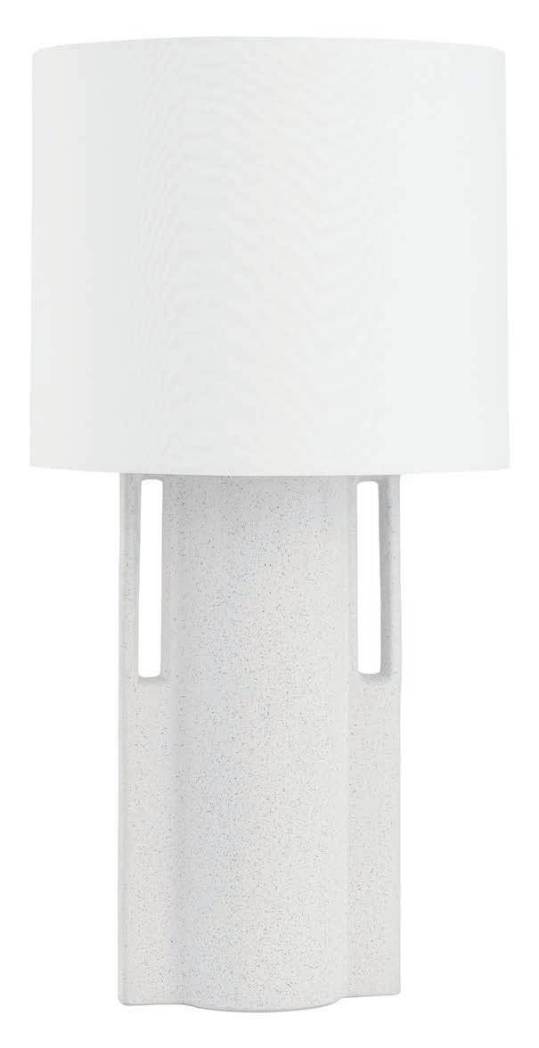 TABLE LAMP DIMENSIONS BASE SHADE MATERIAL BULBS PTL1018 12.75"W x 26"H 6.5W" x 5.75"L 12.75"D x 12"H White Linen 75 w/m Not Included On/Off switch on socket White concrete