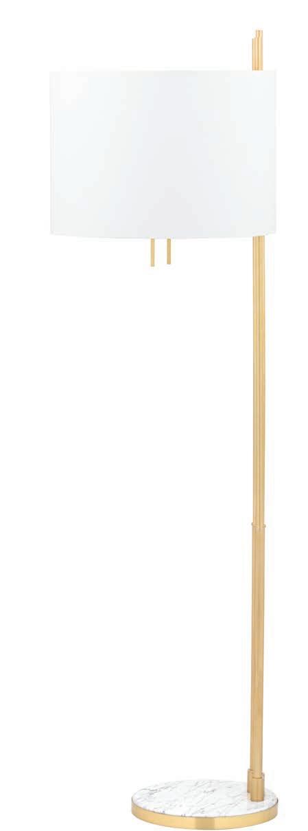 132 133 HL724403-AGB ITEM W L H BASE GLASS BULBS FINISHES HL724403 11" 8.75" 67" 6"D Opal Glossy 3 60 w/m Not Included G25 Recommended Aged Brass (AGB) On/off floor switch BELLE SANG HL682401-AGB HL682401-AGB ITEM W H BASE SHADE MATERIAL BULBS FINISHES HL682401 15" 64.5” 11"D 3.25"T x 15"B x 7"H Linen 1 75 w/m Not Included Aged Brass (AGB) On/off foot switch. DESIGNER DABITO