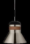 EN Cordea was born out of the desire to reinterpret the classic industrial lamp with an aluminium lamellar head in a contemporary way, from an aesthetic and material perspective. The expertly forged metal frame features a contrasting leather strap.