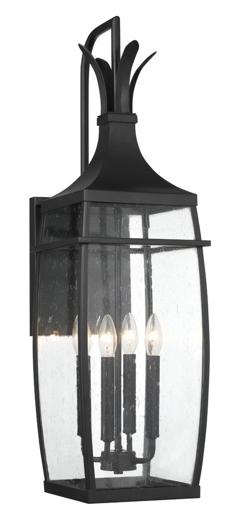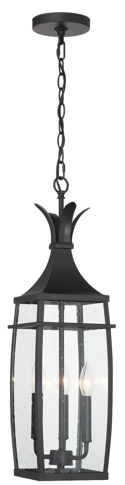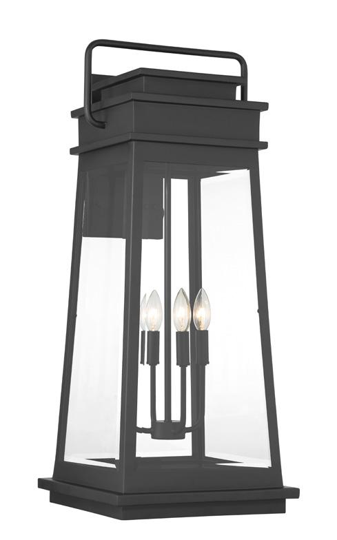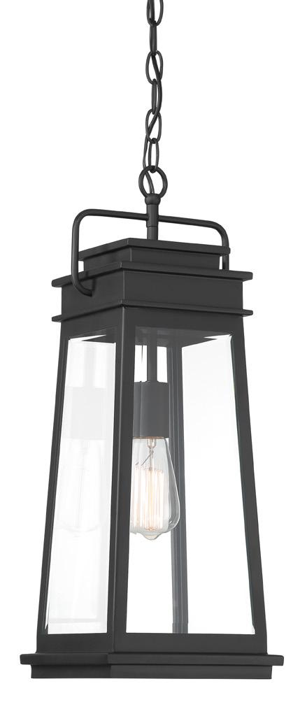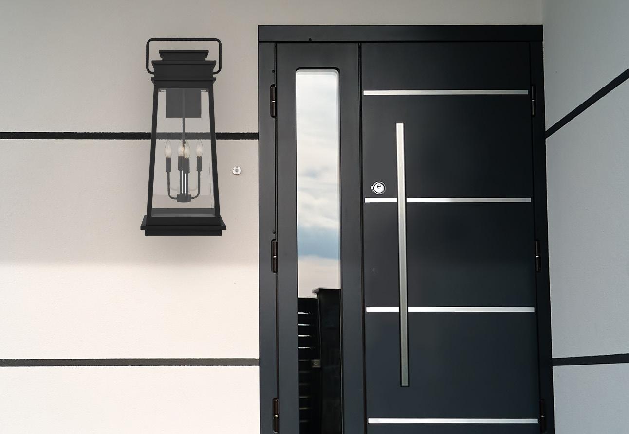 Boone has a classic lantern-style lighting look with panes of clear beveled glass and a matte black finish that adds versatility.