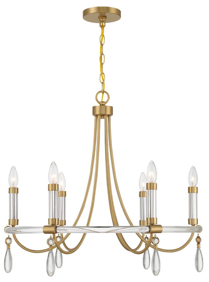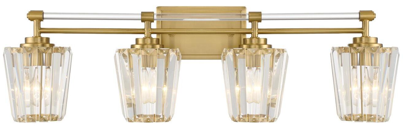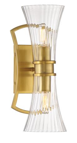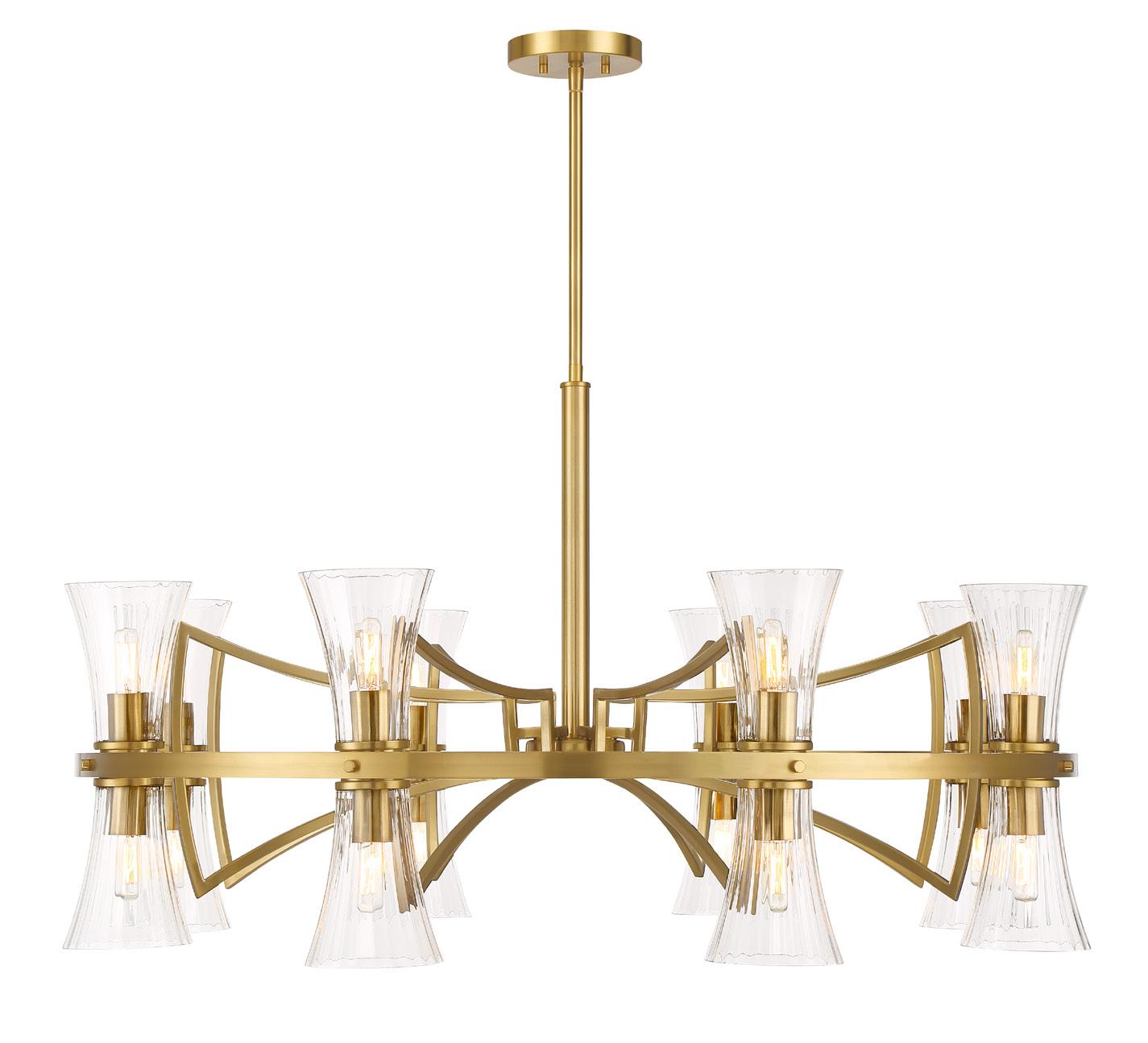 This Savoy House Bennington collection features pleasantly curving shapes that combine to create an intriguing lighting look. Fluted clear glass shades and thoughtful detailing on the structure, finished in warm brass, gives the impression of motion.