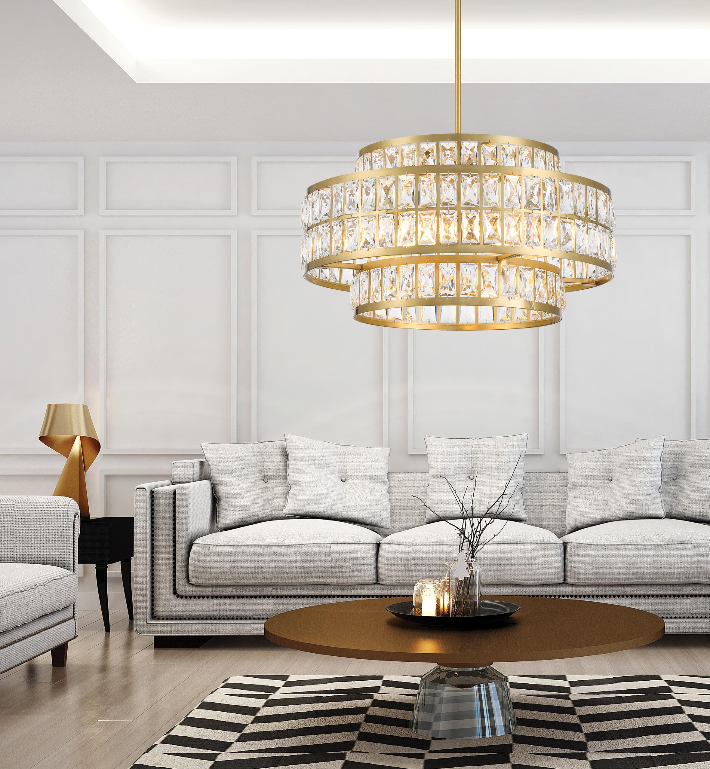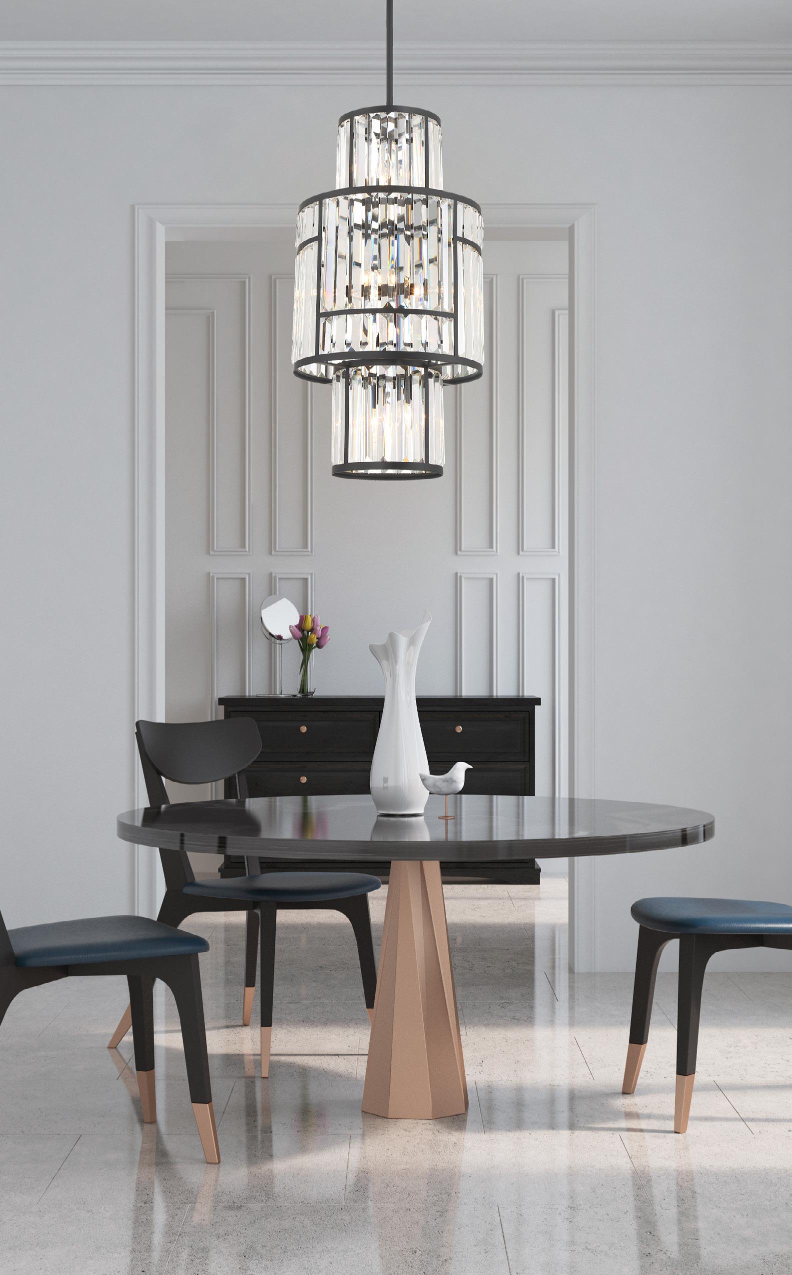 Tiers of shimmering faceted acrylic gems cascade down to create a gorgeous look in the Marquise. Its band of matte black and warm brass adds a dose of classic, timeless glamour. Marquise truly is fine jewelry for the home.