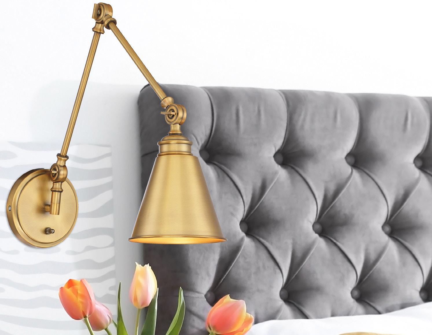 The Morland sconce provides stylish, adjustable wall lighting that can conveniently be used anywhere thanks to the included cord and plug.