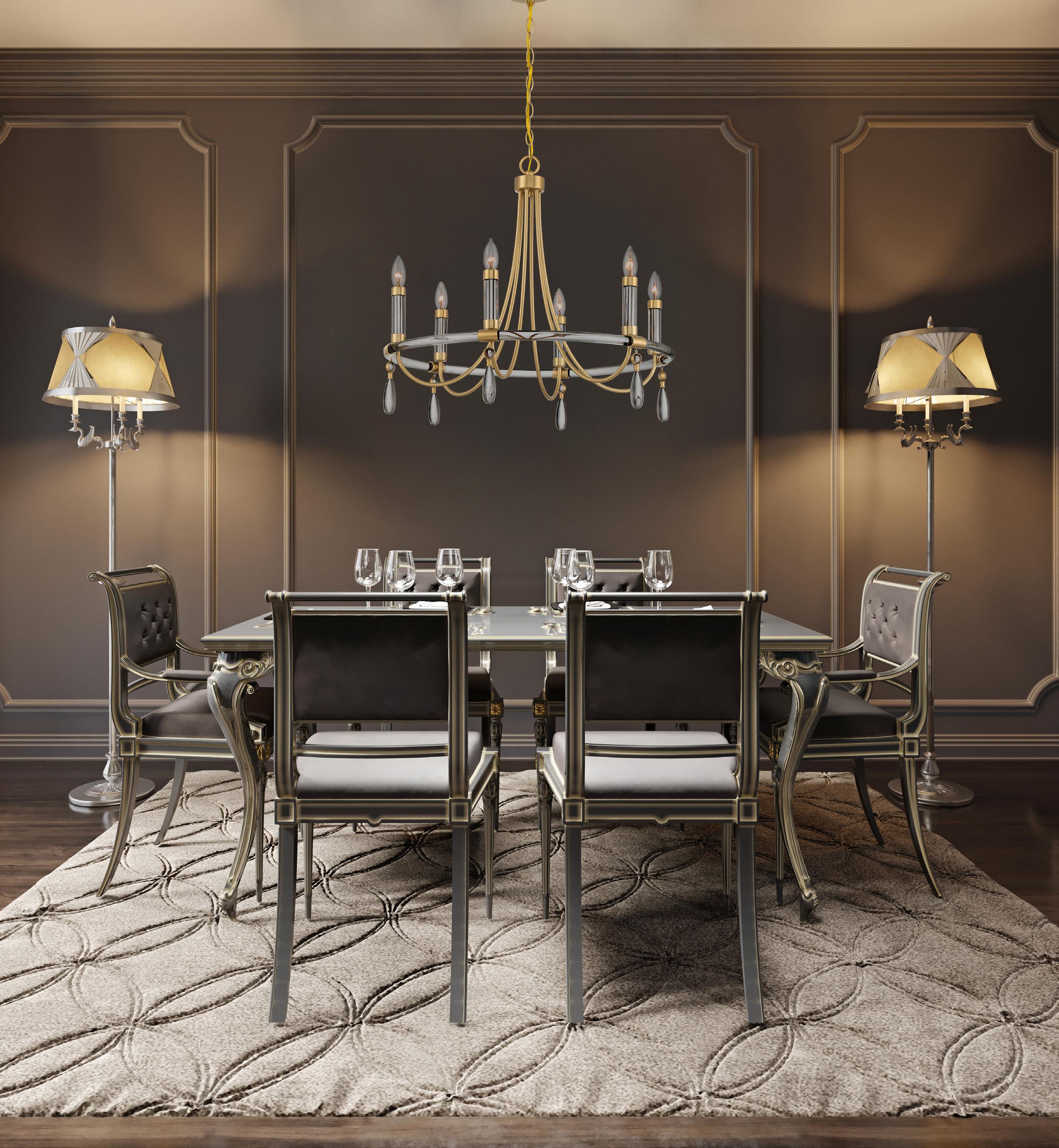 The sharply angled frames and crystal adornments of Rohe are perfect examples of the Art Deco touches that are often found in Hollywood Regency style.