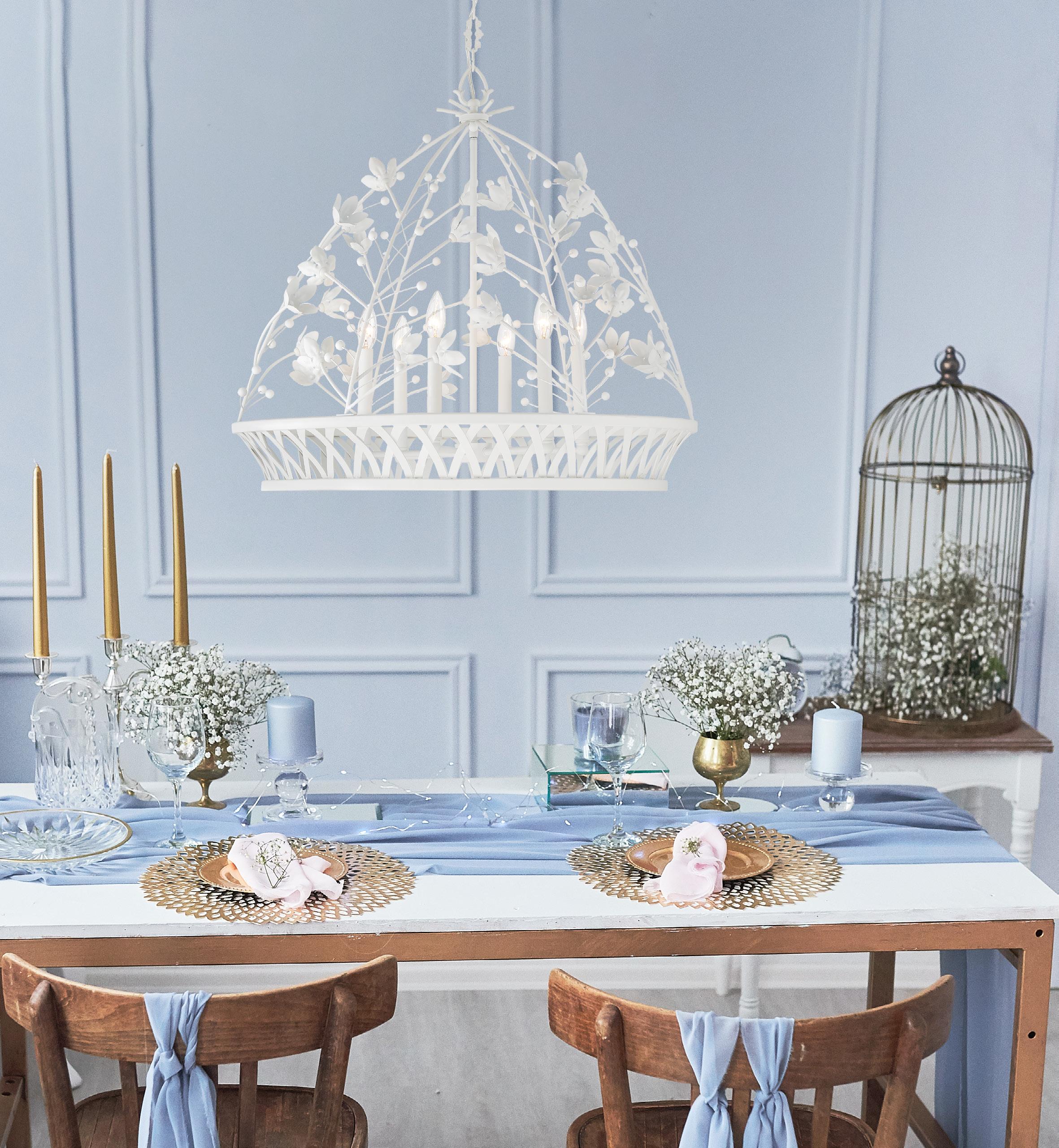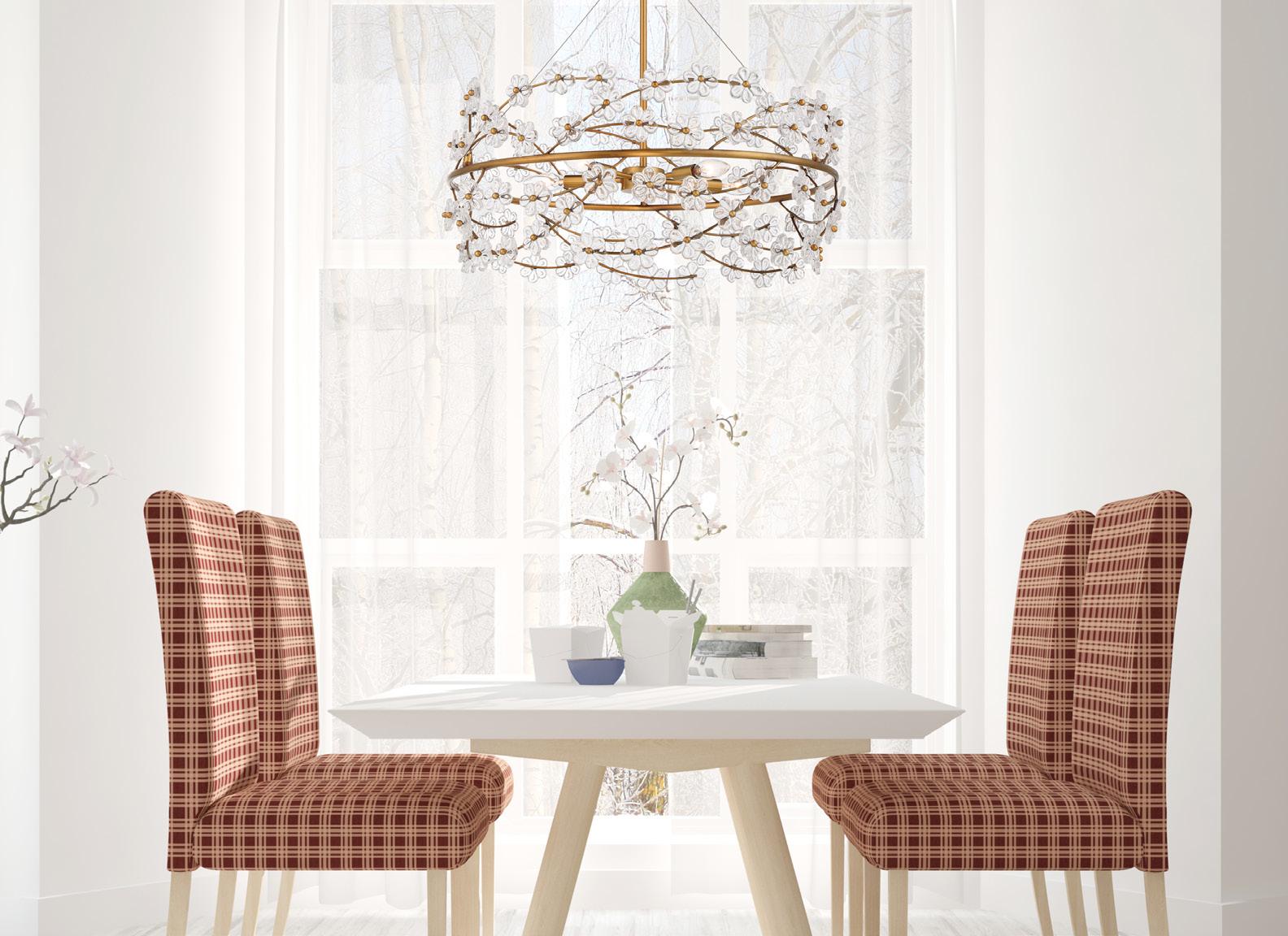 Treat your home to a bouquet of flowers with the Camille chandelier, which features sprigs of clear glass flowers that burst forth from the central ring.