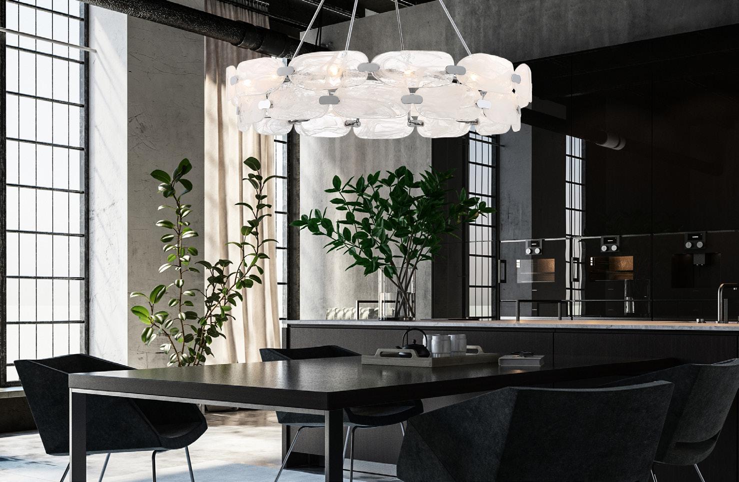 Thanks to its clean lines and simple structure, Salem can easily illuminate a large space and make a big style statement without looking imposing.